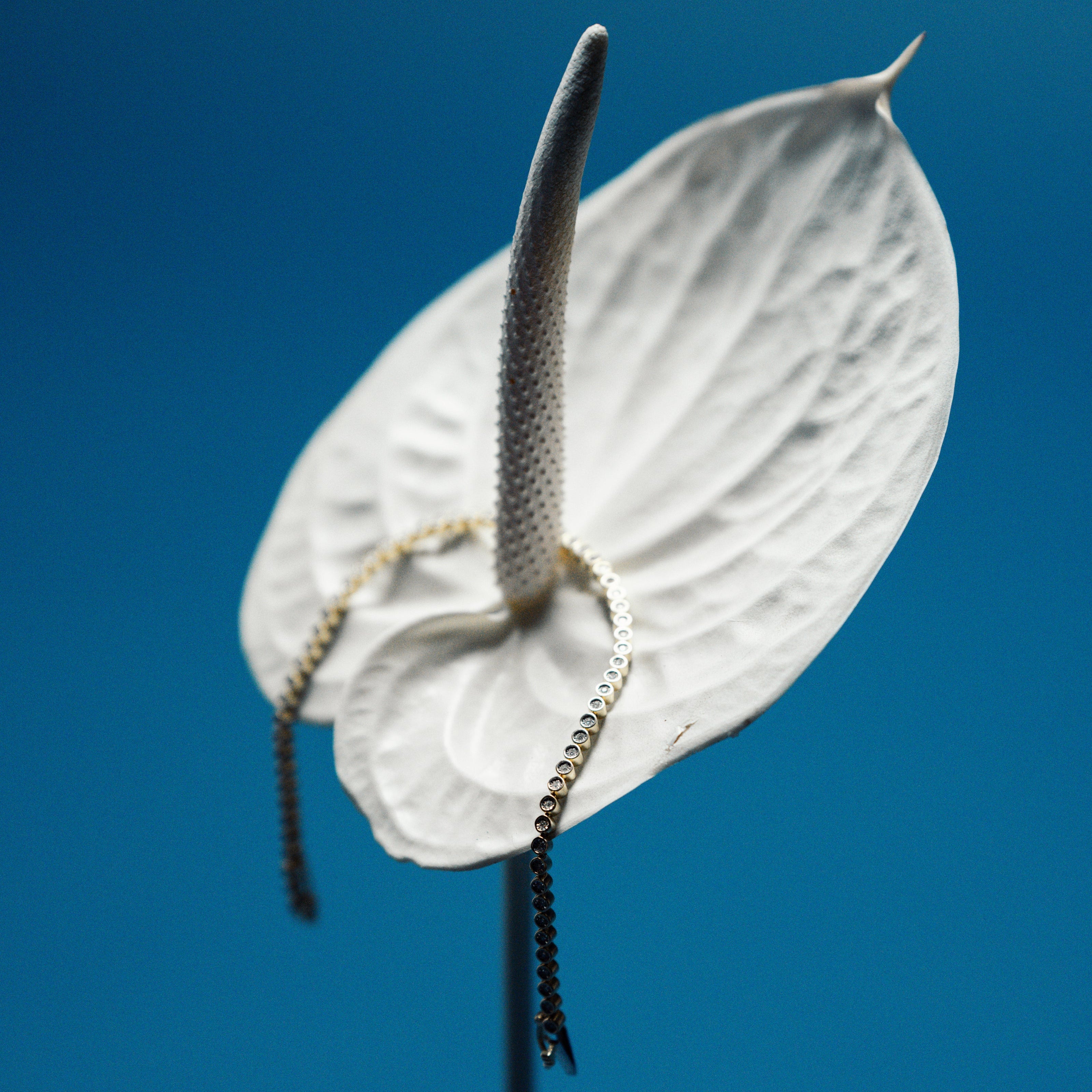 Każdy element tej biżuterii powstaje ręcznie – od kształtowania ogniw po precyzyjne osadzanie diamentów.