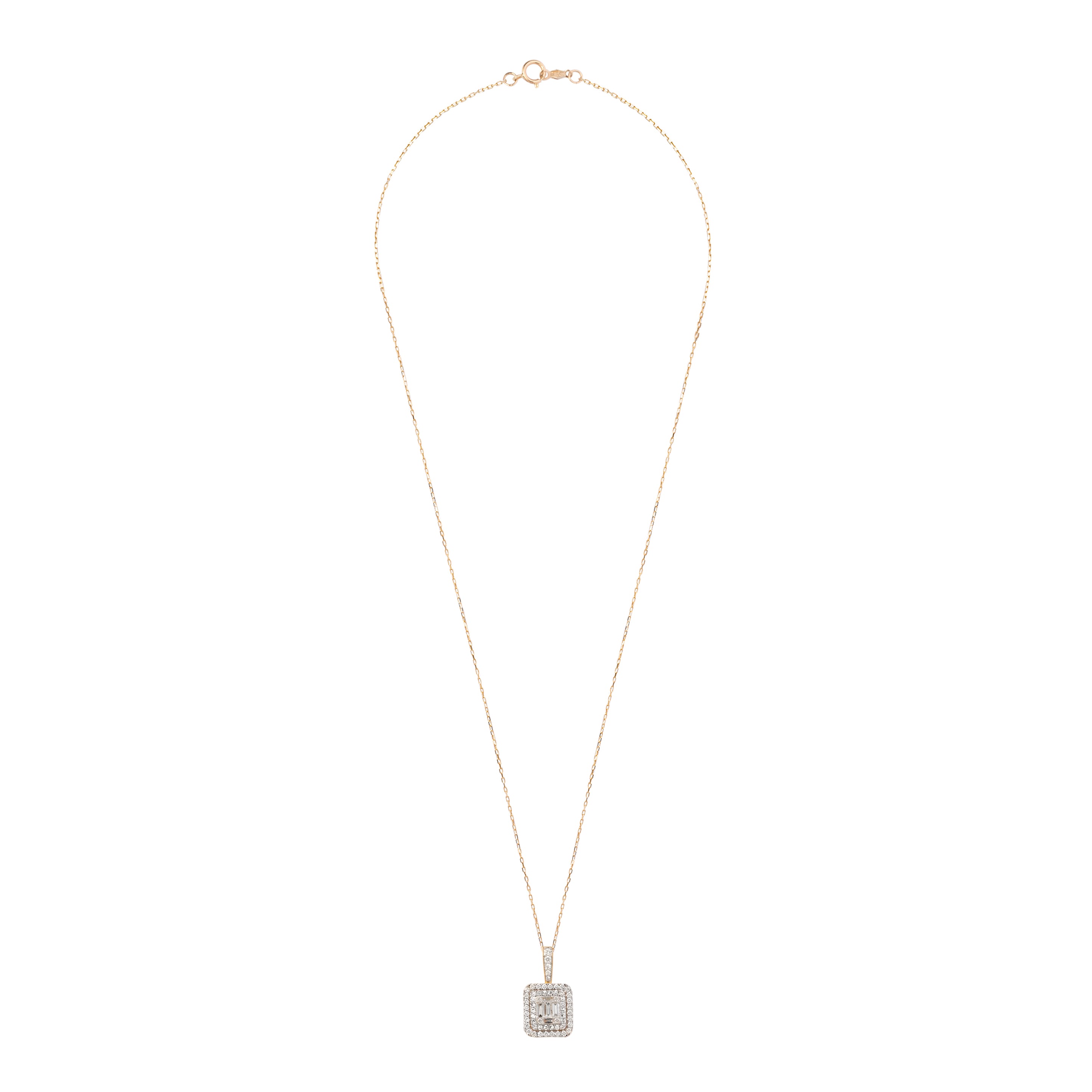 odsłonie. Centralny diamentowy układ w szlifie emerald otacza podwójna, misternie wykonana rama kamieni — tworząc efekt głębokiej, świetlistej tafli.